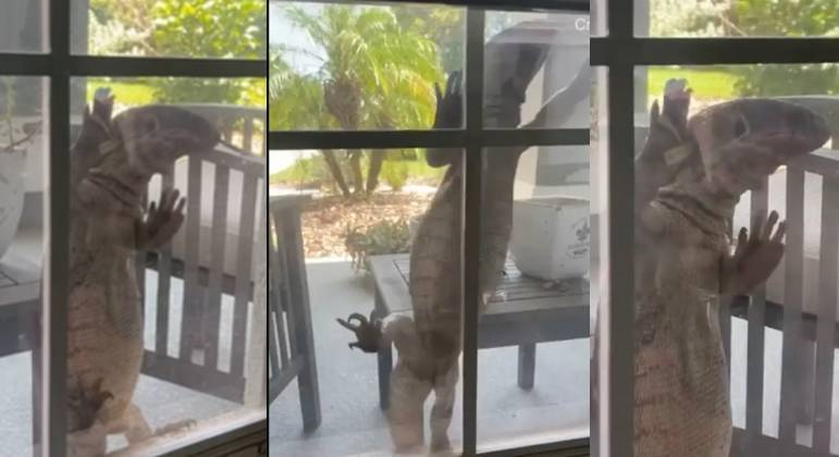 [VÍDEO] Lagarto gigante causa terror ao subir janela de residência: 'Parece o Godzila'