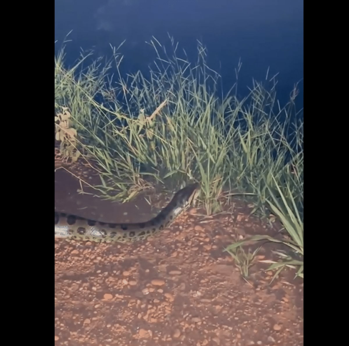 [VÍDEO] Em raro registro, moradores filmam Sucuri atravessando estrada de terra durante a noite em Goiás