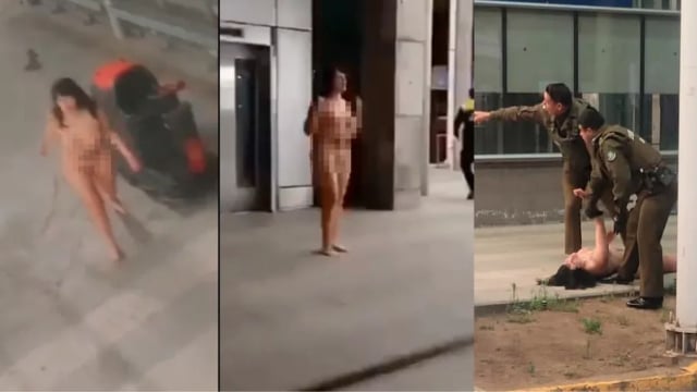[VIDEO] Mulher completamente sem roupas ataca pessoas em aeroporto, no Chile