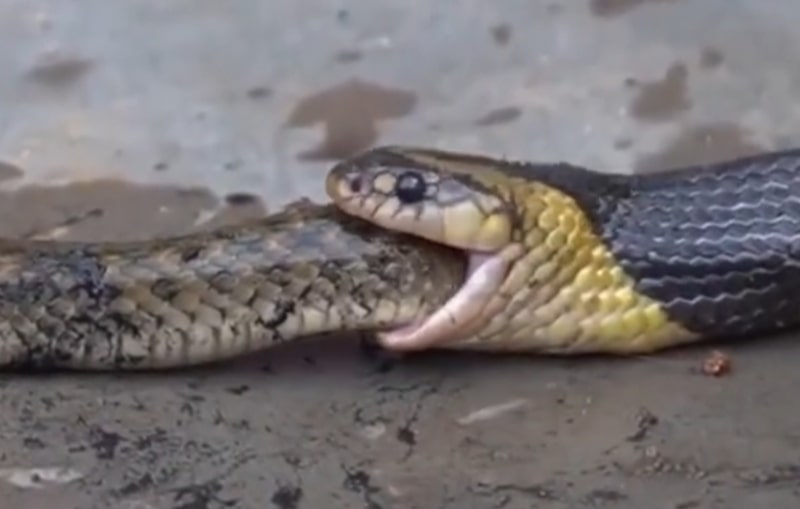 VÍDEO: Cobra gulosa devora serpente inteira em registro chocante